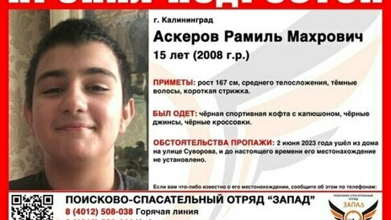 В Калининграде разыскивают 15-летнего Рамиля Аскерова. Об этом сообщают волонтёры ПСО «Запад».