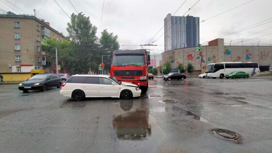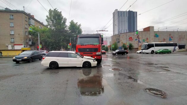 В Новосибирске водитель грузовика протаранил Subaru Legacy