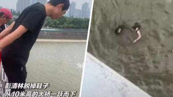 Asia One: в Китае курьер прыгнул в воду с 12-метрового моста ради спасения женщины