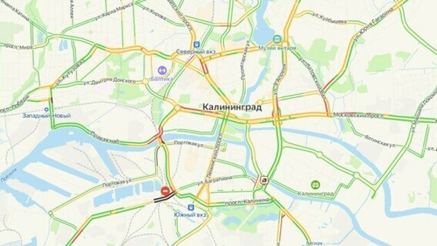 Утром в пятницу, 30 июня, Калининград встал в четырёхбалльных пробках. Об этом говорят данные сервиса «Яндекс.Карты».