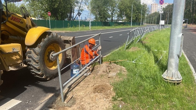 К устройству перильного ограждения приступили на Мякининском шоссе в Подмосковье