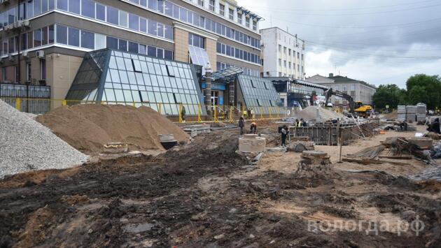 Работы по благоустройству площади у ЦУМа в Вологде ведутся по графику