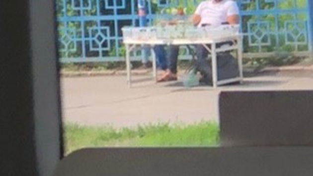 Очевидцы поделились фото в социальных сетях. На кадрах видно, как мужчина обустроил торговую точку: поставил стол и стул. Помимо этого, заметно, что на столе стоят контейнеры.