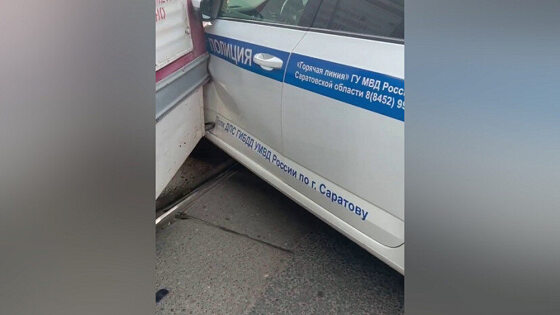 В Саратове полицейский автомобиль ДПС врезался в трамвай