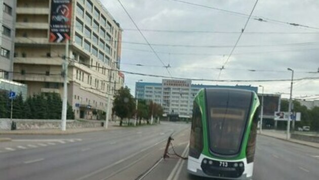 В Калининграде на Ленинском проспекте у трамвая «Корсар» оторвало пантограф — дугу, ведущую к сети. Об этом «Клопс» сообщили очевидцы
