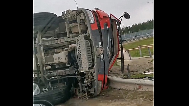 На Северном объезде под Новосибирском 19 августа перевернулся грузовик