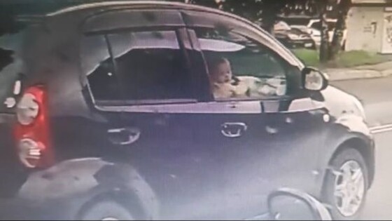 Очевидцы обратили внимание, что за рулем автомобиля находится весьма необычный водитель. Младенец показался из окна машины с водительского сидения.