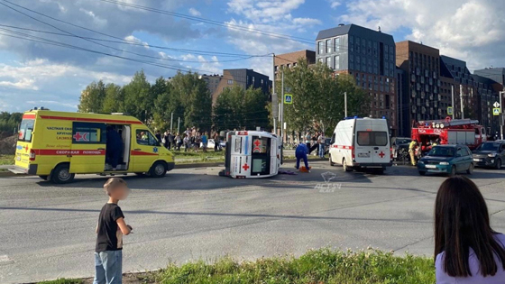 В результате столкновения машина скорой помощи опрокинулась, предварительно в медицинское учреждение обратились водитель и два фельдшера.