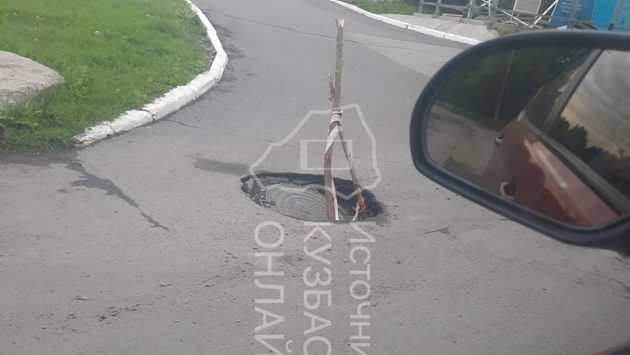 Провал канализационного люка на автодороге возмутил жительницу Кемерова