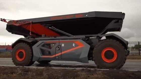 Самосвал предназначен для добычи полезных ископаемых по безлюдной технологии. Его грузоподъемность достигает 27 тонн, а отличительными особенностями являются челночный режим движения, гибридная силовая установка, полный привод и управляемость всех мостов.