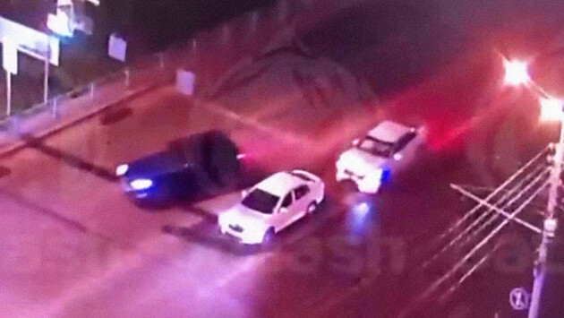 Сначала нетрезвый инспектор врезался в два автомобиля, стоящих у светофора. На видеозаписи с камеры наблюдения видно, что белый автомобиль сначала протаранил кроссовер темного цвета, который отбросило в правую полосу. Затем автомобиль полицейского врезался в стоящую Skoda Octavia. В ходе возникшего конфликта один из водителей пострадавших машин несколько раз ударил виновника ДТП.