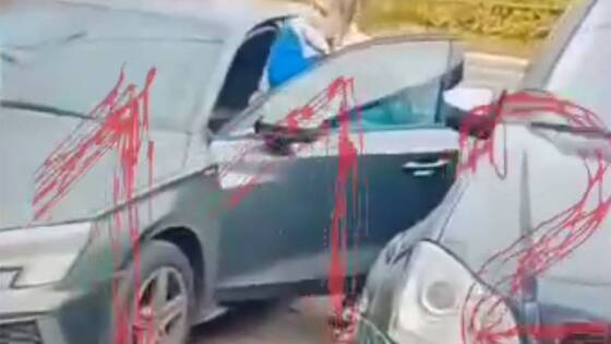 На записи видно, как она садится в машину, но жители окружают ее автомобиль. Водителя это не останавливает — она выезжает с парковочного места и дважды переезжает местную жительницу.