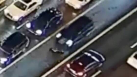 Спустя некоторое время там же появляется другая машина с мигалкой и проезжает по лежащему. По данным канала, автомобили принадлежат Федеральной службе охраны и Министерству внутренних дел России.