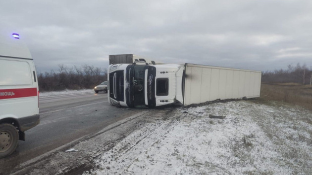 На трассе М-5 под Сызранью опрокинулся грузовик с полуприцепом