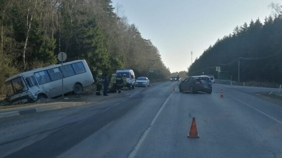 Автобус вылетел в кювет после ДТП на трассе Калуга-Медынь