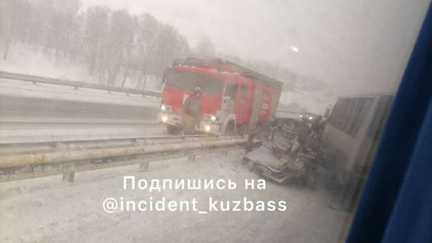 На трассе Кемерово – Мариинск кузбассовцы стали свидетелями жесткого ДТП с участием фур и легковоза.