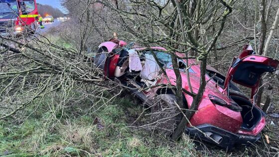 «Не лучший канун нового года для водителя этой Ferrari. Ранее он на высокой скорости обогнал офицера полиции, который был не при исполнении, на дороге М40 близ Уорика. Впоследствии водитель потерял управление над автомобилем и вылетел в деревья. К счастью, водитель получил лишь небольшие травмы. ДТП не затронуло других участников движения», — сказано в отчёте полиции.