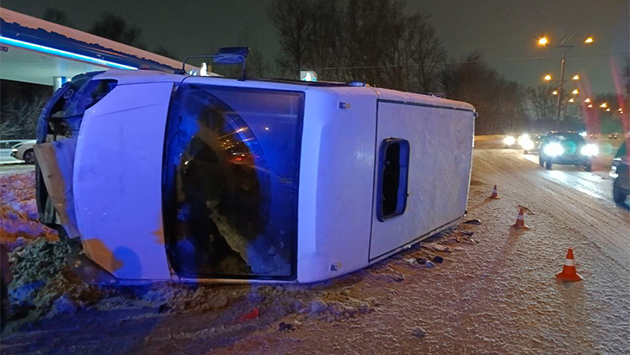 . Один из подписчиков сообщил, что маршрутное такси № 91 опрокинулось между АЗС «Газпромнефть» и «METRO», пассажиры выбираются через люк: «Кто-то подрезал маршрутку, она перевернулась, пассажирам пришлось эвакуироваться через люк. Есть пострадавшие, но нет критичных. Вовремя успели отключить аккумулятор».