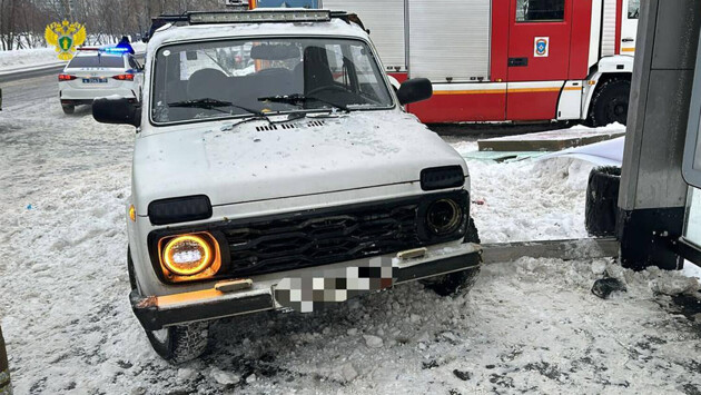 Судя по фото, в аварию попала Lada Niva Legend. У машины разбита фара, погнут бампер. О состоянии пострадавших людей не сообщается.