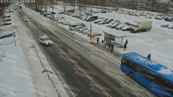 Департамент транспорта Москвы распространил видео, на кадрах которого видно, как начинался занос автомобиля Lada Niva Legend, после которого машина врезалась в остановку общественного транспорта.