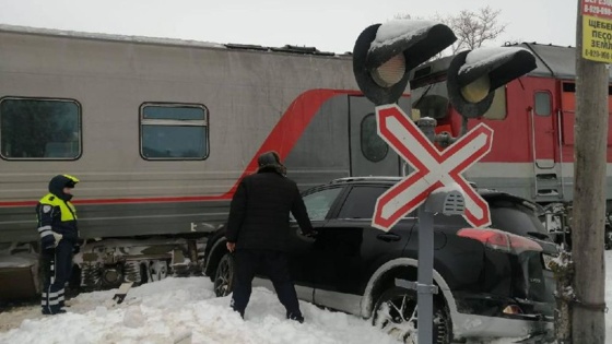 Под Рязанью пригородный поезд врезался в иномарку
