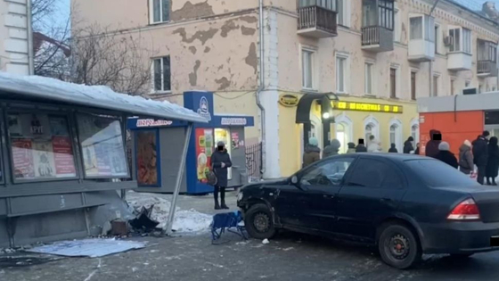 В Кемерове на проспекте Ленина водитель автомобиля Nissan въехал в остановку общественного транспорта, где находились люди.