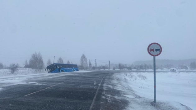 В Кемеровском муниципальном округе произошло ДТП, в результате которого пассажирский автобус съехал в кювет.