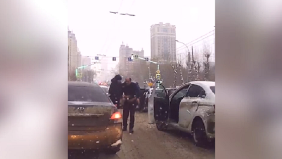 Происшествие попало на камеру видеорегистратора мимо проезжающего авто. Позже ролик появился в сети. На кадрах видно, как три автомобиля окружают «Жигули». Затем несколько крепких мужчин вытаскивают из салона водителя и пассажиров отечественной легковушки, укладывая их лицом в асфальт. После этого мужчин поднимают, прижимают к автомобилю, обыскивают, и усаживают в машины.