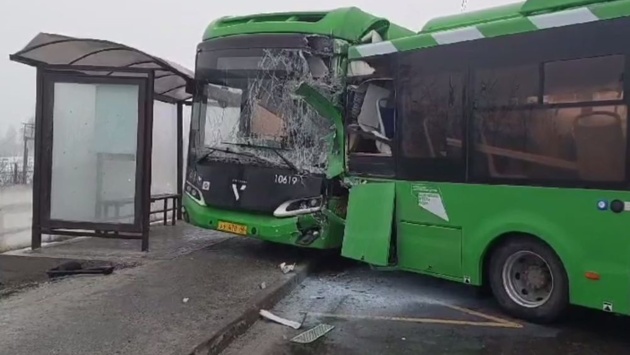 При столкновении получили травмы шестеро пассажиров автобуса, что был позади, в возрасте от 37 до 65 лет. Их доставили в больницу для осмотра.