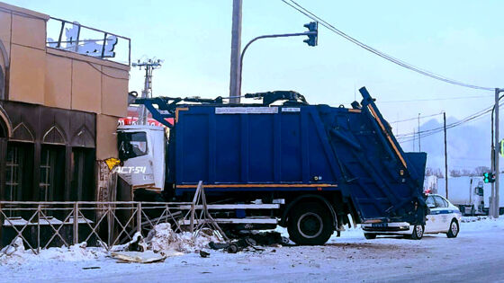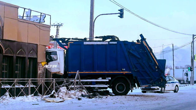 В Новосибирске мусоровоз протаранил здание при ДТП