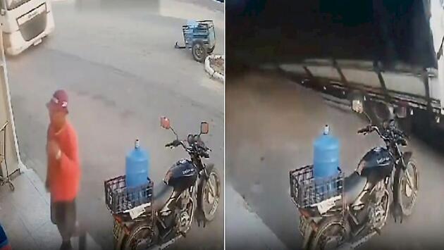 Фура опрокинулась на мотоцикл и чудом не раздавила его владельца: видео