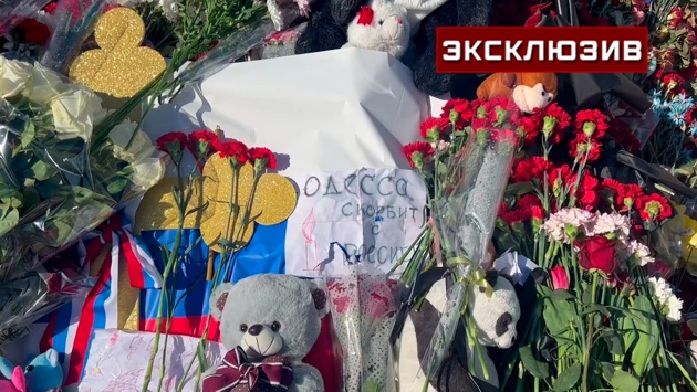 Жители Одессы скорбят по погибшим в результате теракта в «Крокус Сити Холле». Памятное послание появилась на мемориале у здания, где произошла трагедия.