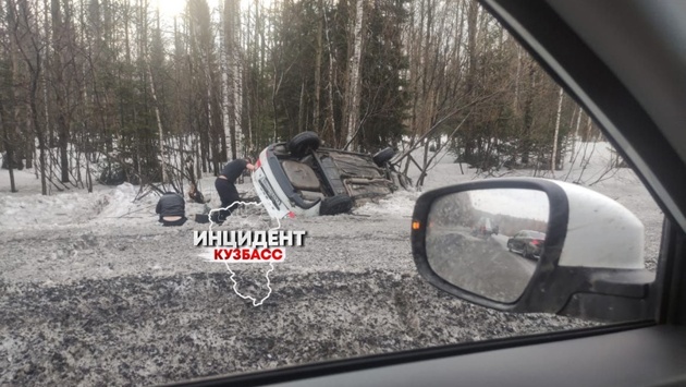 Автомобиль перевернулся на крышу на кузбасской трассе