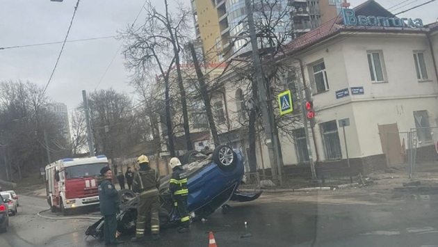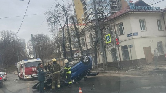 Автомобиль перевернулся после ДТП в центре Нижнего Новгорода
