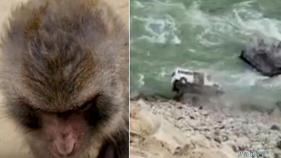 Микроавтобус упал со скалы, пока туристы играли с обезьянами