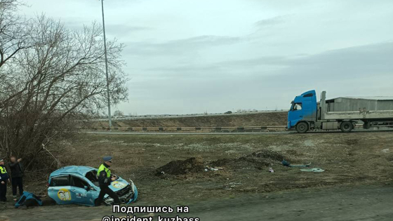 Такси превратилось в груду металла на выезде из Кемерова