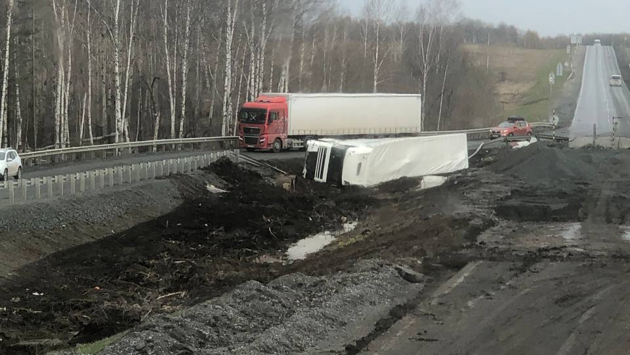 Фура слетела с трассы на краю Кемеровской области