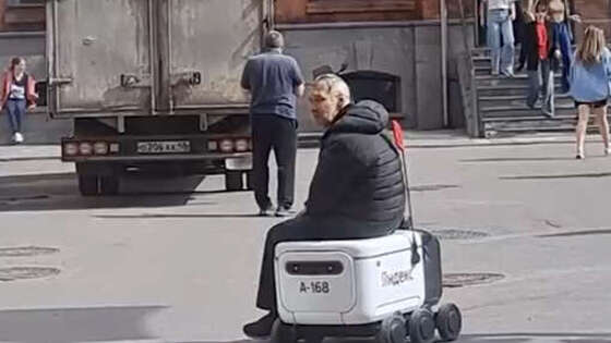 В Москве мужчина сел на робота-курьера, чтобы прокатиться
