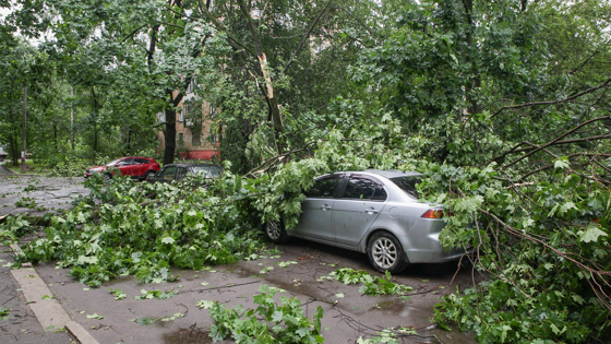 «В результате падения деревьев и незакрепленных конструкций в Москве повреждены 443 автомобиля, в Московской области - 124 автомобиля», — рассказали агентству.