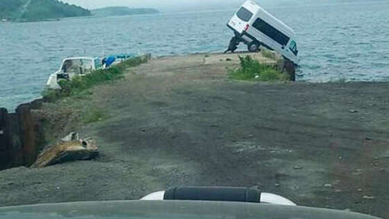 Автобус с 15 пассажирами завис над морем в Приморском крае