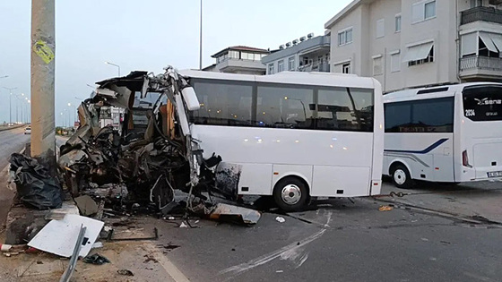 «Микроавтобус вез завершивших отпуск туристов из Аланьи в аэропорт Антальи. Но на перекрестке у моста врезался в бетонную опору, удар был такой силы, что машину отбросило в сторону, после чего она перевернулась. О происшествии сообщили очевидцы, на место сразу направили несколько машин скорой помощи. Сообщается, что в ДТП пострадали несколько десятков туристов и сам водитель микроавтобуса. После оказания первой помощи бригадами неотложки раненых доставили в близлежащие больницы. Сейчас полиция ведет расследование, причины и обстоятельства аварии устанавливаются».