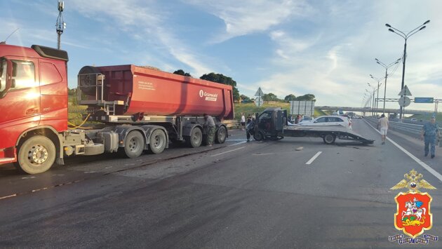Предварительно установлено, что водитель за рулем грузовика «Мерседес» совершил попутное столкновение с 14 транспортными средствами, стоящими в дорожном заторе. Транспортные средства получили механические повреждения.