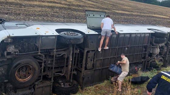 На Кубани 15 человек пострадали в перевернувшемся автобусе