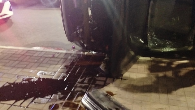 Легковушка снесла ограждения и перевернулась в центре Калуги