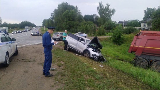 По предварительной информации регионального УМВД, 34-летний водитель грузовика Scania, двигаясь в направлении Ярославля, не справился с управлением, выехал на полосу встречного движения и столкнулся с автомобилем Geely.