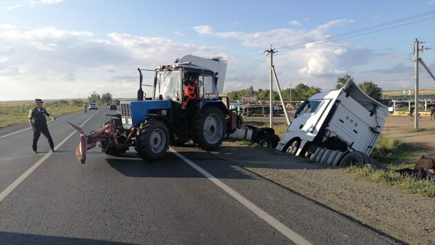 Прибывшие на место происшествия правоохранители вызвали спецтехнику. При помощи трактора и двух погрузчиков сотрудники дорожной службы вытаскивали большегруз из канавы. В это время инспекторы ДПС перекрыли полосу движения и организовали безопасный проезд транспортных средств на участке трассы.