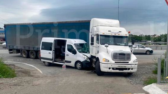Во Владивостоке автобус столкнулся с большегрузом, есть пострадавшие