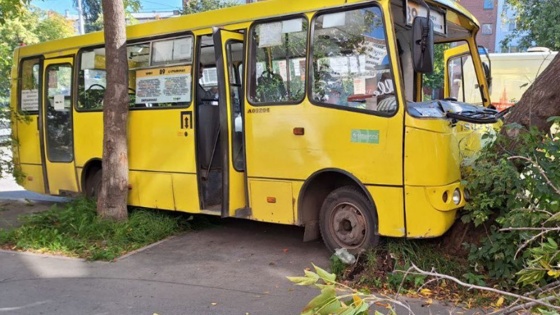 В Екатеринбурге водитель автобуса отвлекся от дороги и въехал в дерево