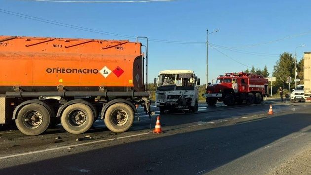 В Свердловской области столкнулись бензовоз и автобус с двумя десятками пассажиров