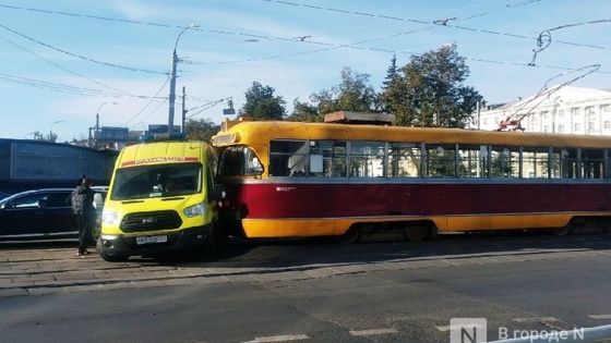 Трамвай и скорая попали в массовое ДТП на площади Лядова
